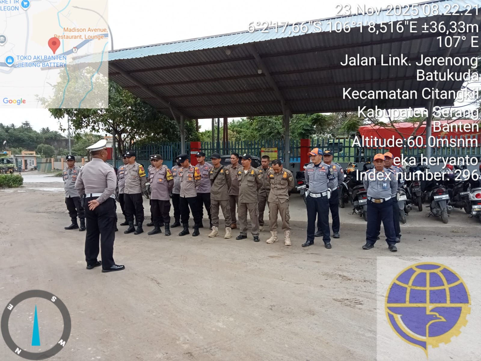 Cilegon - Apel Pagi Kegiatan Rutin yang Ditingkatkan (KRYD) dalam rangka pengaturan arus lalu lintas di Jalur Lingkar Selatan, Minggu (23/11/2025).