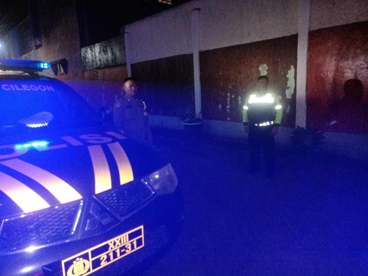 Anggota unit patroli samapta Polsek Cilegon lakasnakan Blue light patrol antisipasi kejahatan malam hari jaga keamanan