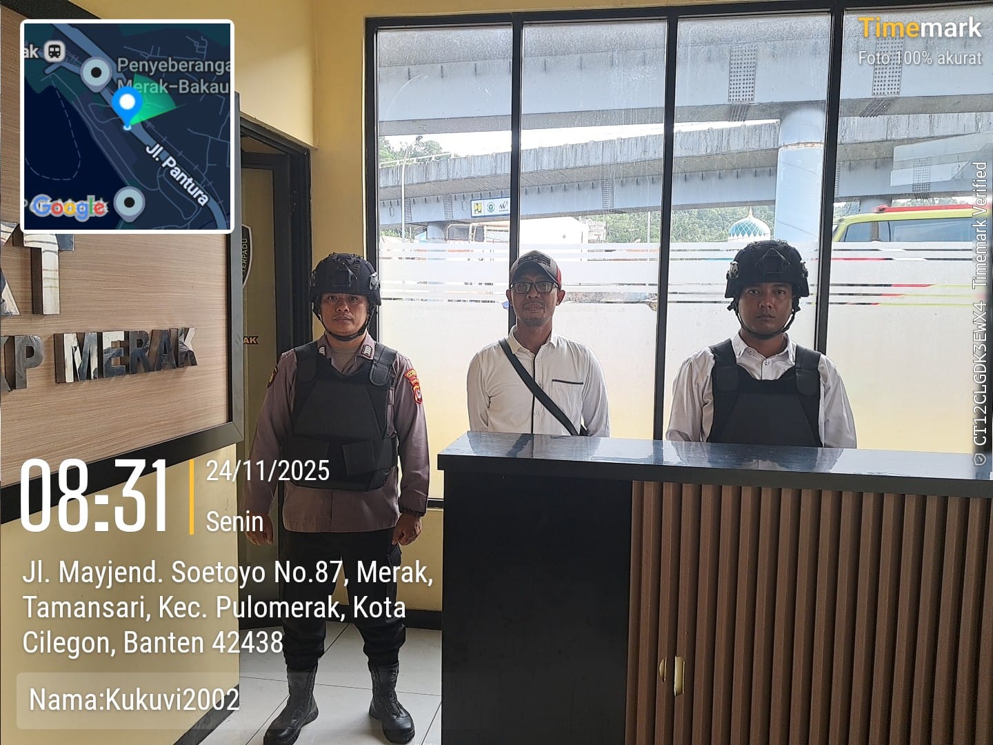 Cilegon - Personel piket jaga Polsek Kskp Merak Polres Cilgon Polda Banten melaksanakan siaga 1 Polsek pelaksanaan Sispam Mako oleh piket siaga dipimpin oleh Kspk Polsek Kskpy Merak Polres Cilegon Polda Banten, Senin (24/11/2025).