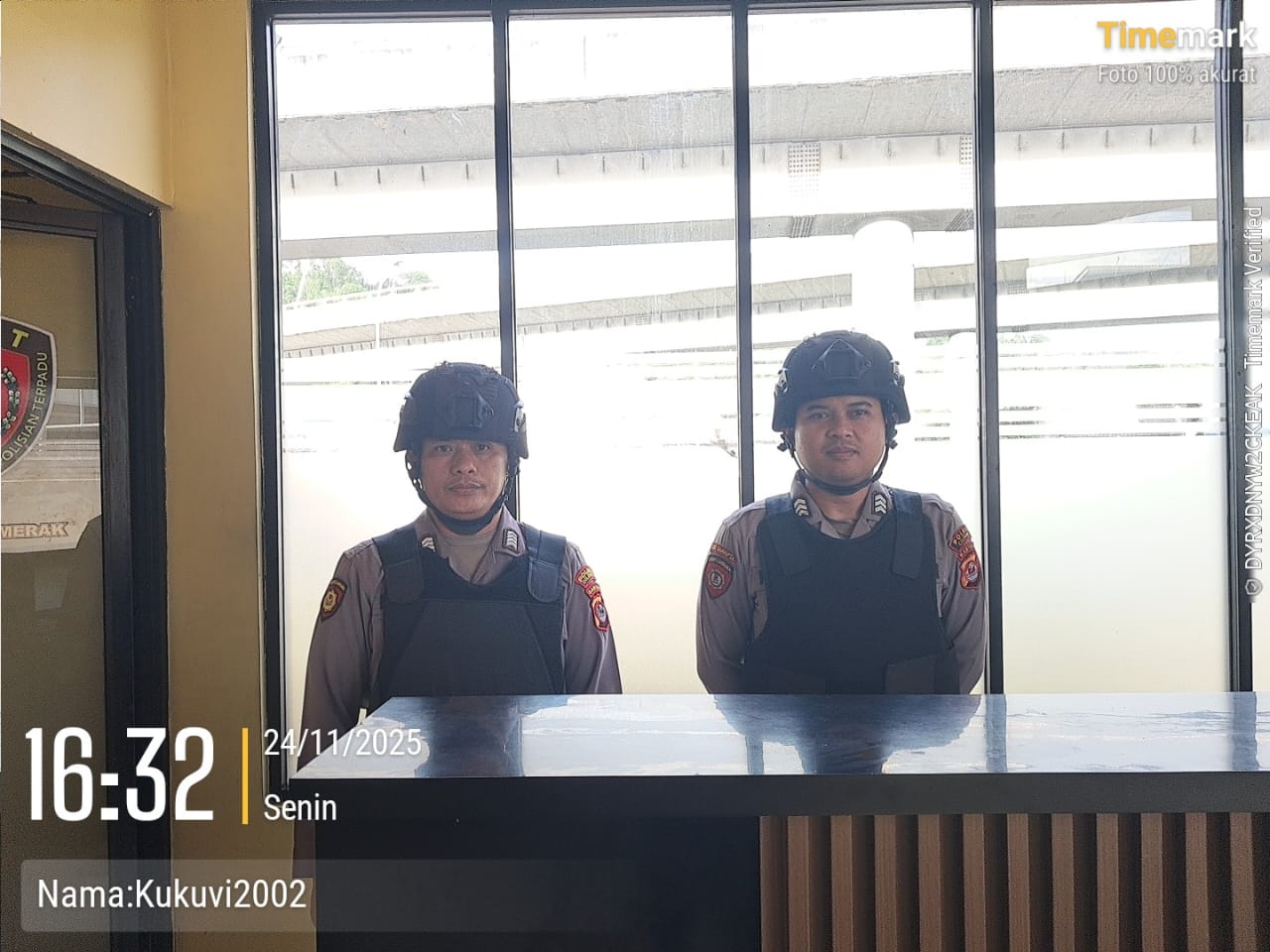 Cilegon - Personel piket jaga Polsek Kskp Merak Polres Cilgon Polda Banten melaksanakan siaga 1 Polsek pelaksanaan Sispam Mako oleh piket siaga dipimpin oleh Kspk Polsek Kskpy Merak Polres Cilegon Polda Banten, Senin (24/11/2025).