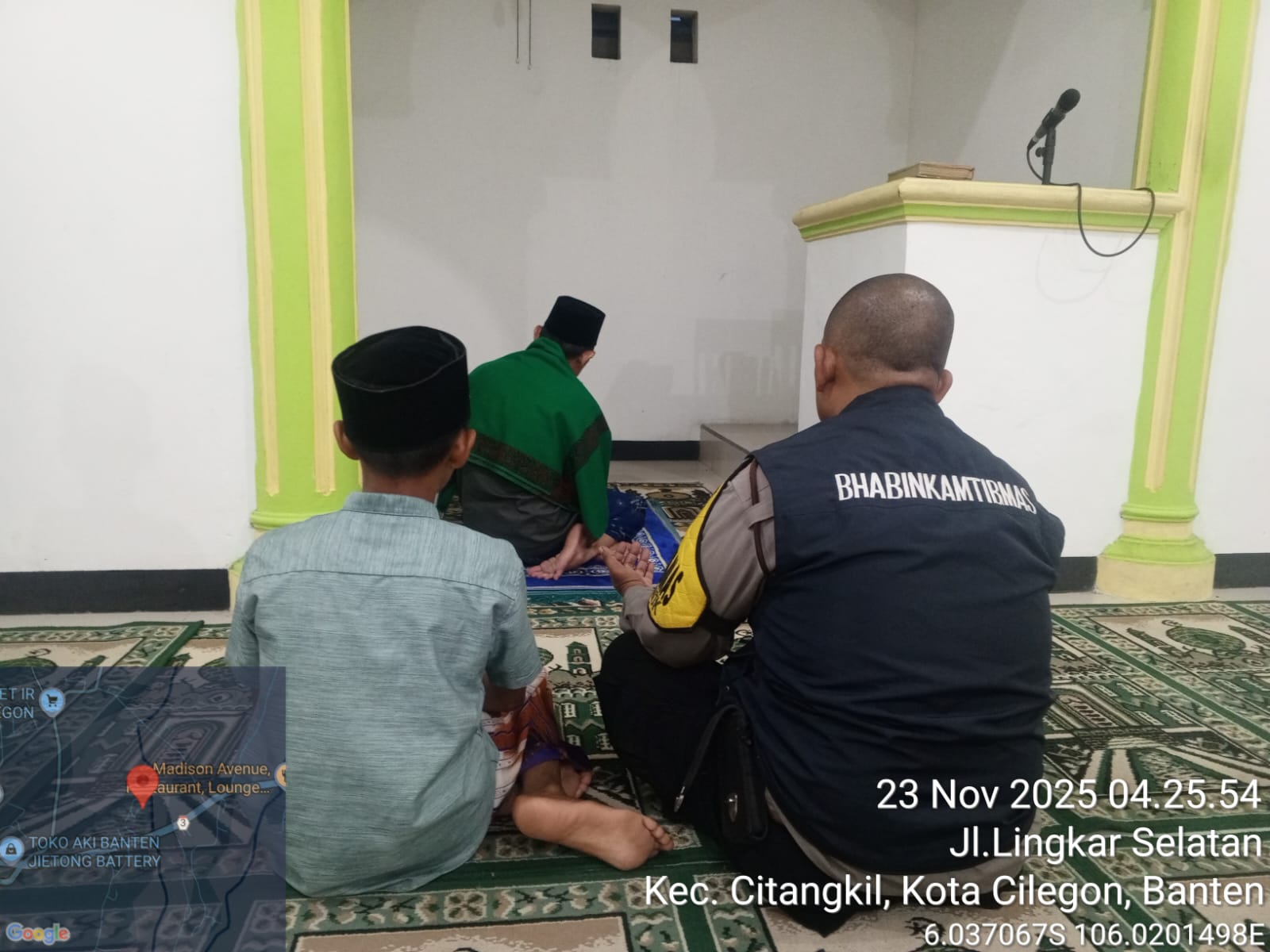 Cilegon – Bhabinkamtibmas Polsek Ciwandan Polres Cilegon Polda Banten menggelar kegiatan Pembinaan Rohani dengan Sholat subuh keliling di Masjid Yang ada Di Daerah hukum Polsek Ciwandan Polres Cilegon Polda Banten, Senin (24/11/2025).