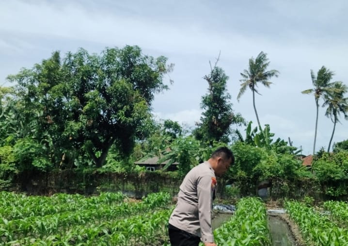 -POLRES CILEGON–Polda Banten. Bhayangkara Pembina Keamanan dan Ketertiban Masyarakat (Babinkamtibmas) Aiptu Daryo.E aktif mendampingi petani jagung di lingkungan Daliran, Kelurahan Kebondalem, Kecamatan Purwakarta, Kota Cilegon. Kegiatan ini meliputi monitoring pertumbuhan tanaman jagung serta pengecekan kondisi lingkungan sekitar.Selasa.(25-11-2025).