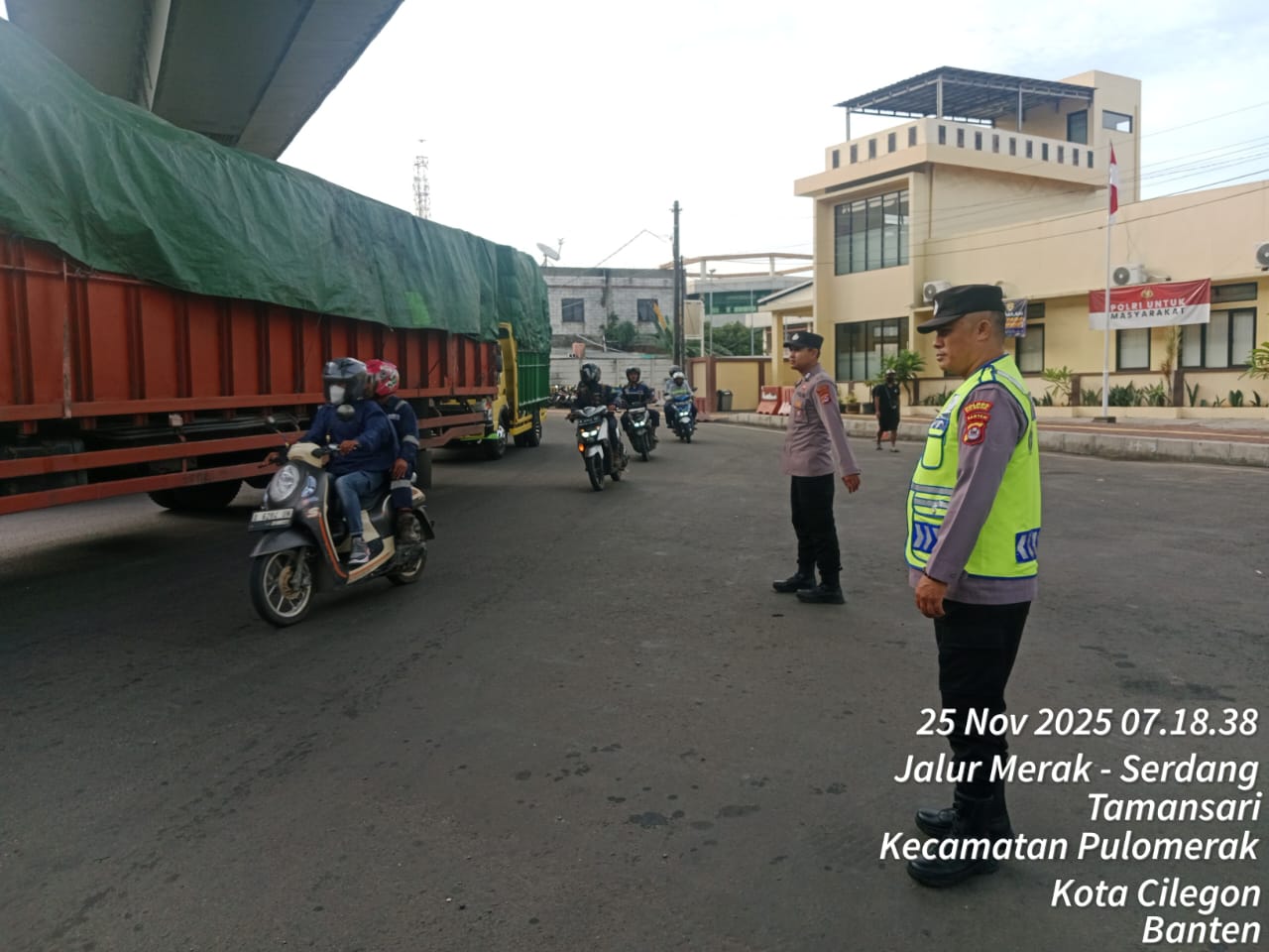 Cilegon - Dalam rangka peningkatan pelayanan prima kepada masyarakat, Kskp Merak Polres Cilegon Polda Banten melaksanakan pengaturan antrian R4 yang akan masuk ke Kapal Ferry di Pelabuhan Merak, Selasa (25/11/2025).