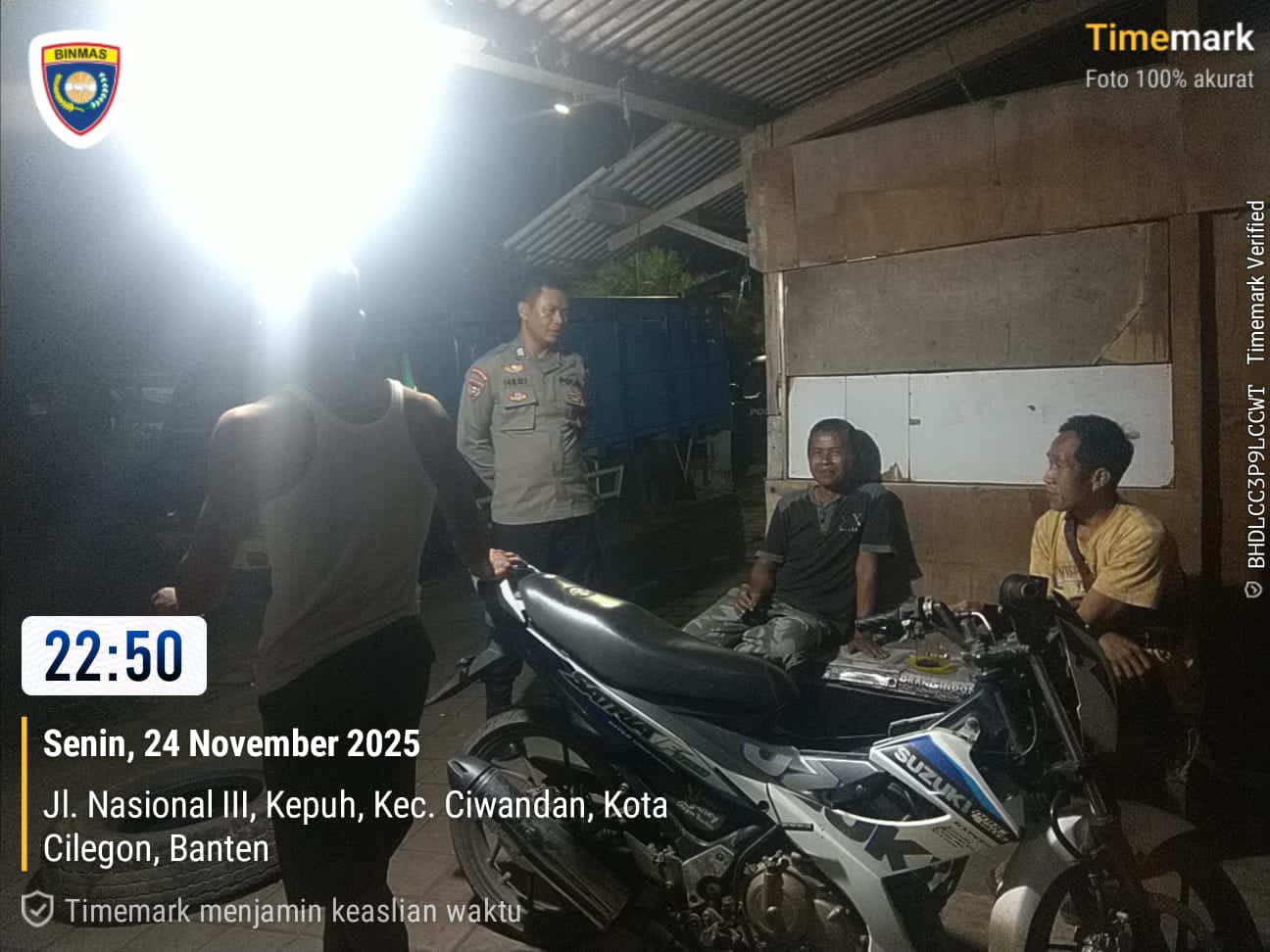 Cilegon - Polsek Ciwandan Polres Cilegon Polda Banten kembali menunjukkan komitmennya dalam menciptakan keamanan dan ketertiban masyarakat (kamtibmas) yang kondusif melalui Kegiatan Patroli Malam, Kegiatan ini dilakukan secara rutin dengan berkeliling di daerah hukum Polsek Ciwandan,Selasa (25/11/2025).