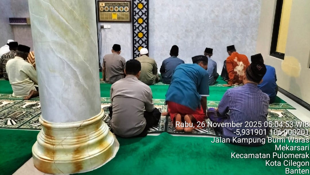 Cilegon – Personil Kskp Merak Polres Cilegon Polda Banten menggelar kegiatan Pembinaan Rohani dengan shalat subuh keliling di Masjid Yang ada Di Daerah hukum Polsek Kp Merak Polres Cilegon Polda Banten, Rabu (26/11/2025).