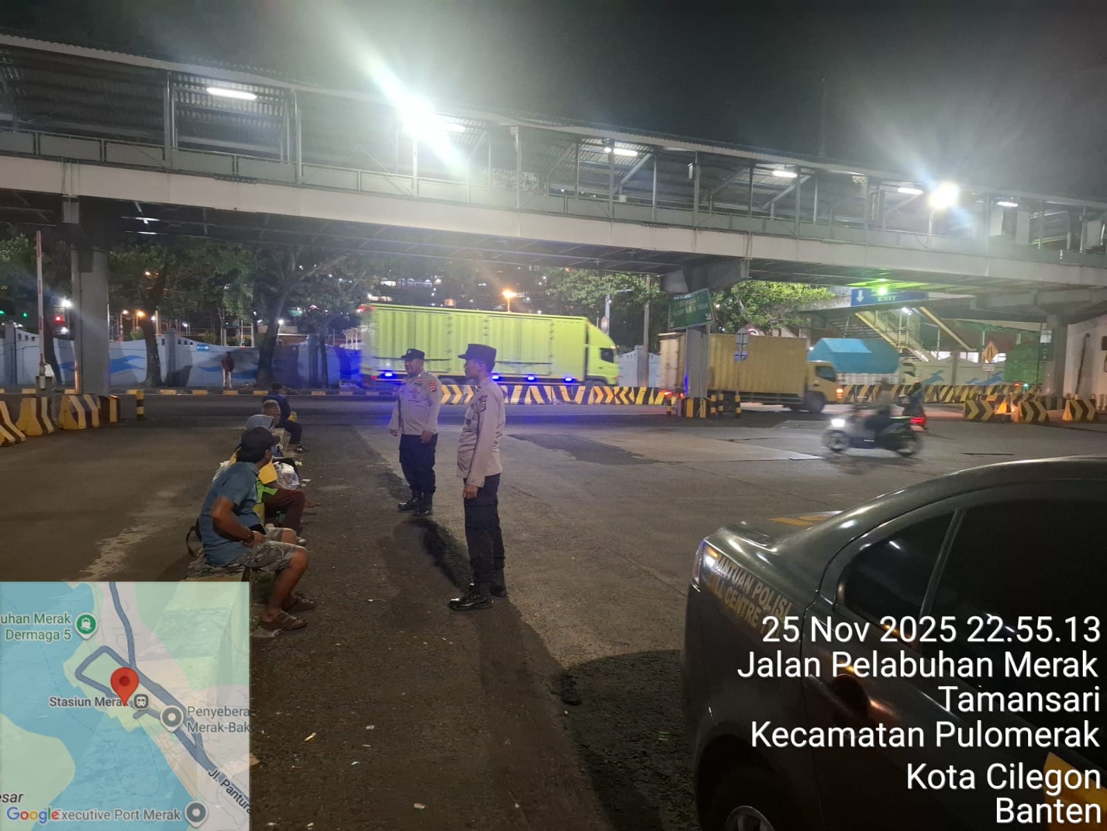 Cilegon - Personil Polsek Kskp Merak Polres Cilegon melaksanakan patroli di kawasan pelabuhan merak memberikan rasa aman dan damai, Rabu (26/11/2025)