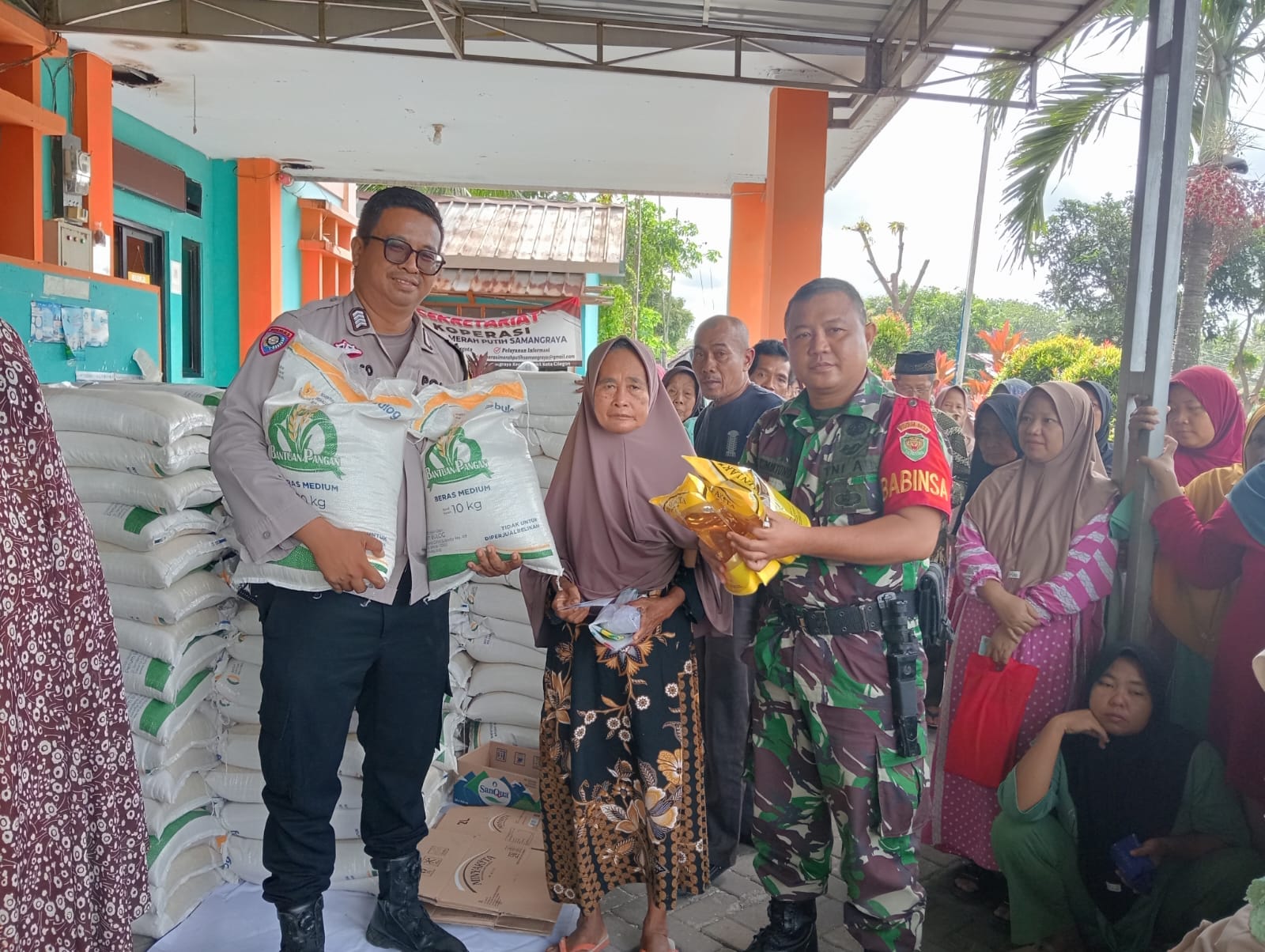 Cilegon - Bhabinkamtibmas Kelurahan Samangraya Polsek Ciwandan Polres Cilegon Polda Banten BRIPKA Marisco melaksanakan pengawalan dan pendampingan dalam penyaluran Bantuan Pangan Pemerintah,Bantuan pangan di Kantor kelurahan Samangraya Kecamatan Citangkil Kota Cilegon, Rabu (26/11/2025).