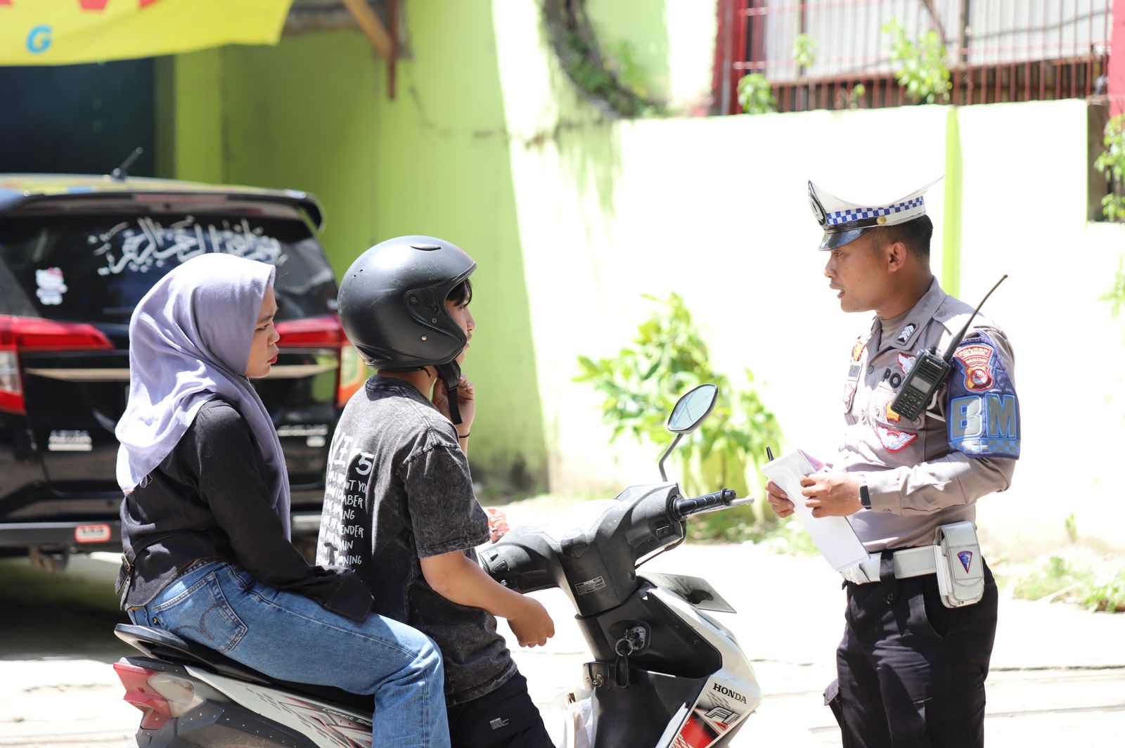Selain itu, petugas juga melakukan teguran dan penindakan terhadap pengendara yang terbukti melanggar aturan. Penindakan dilakukan secara terukur dan humanis, dengan tujuan meningkatkan kesadaran masyarakat agar lebih berhati-hati dan patuh demi keselamatan diri sendiri maupun pengguna jalan lainnya.
