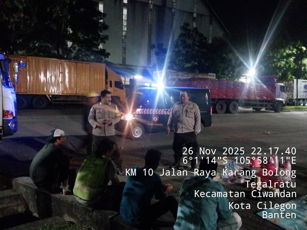 Cilegon - Personil Polsek Ciwandan Polres Cilegon Polda Banten Dalam Pelaksanaan Kegiatan Patroli dengan menyalakan lampu rotator berwarna biru di Daerah Hukum Polsek Ciwandan Polres Cilegon Polda Banten dari malam hingga dini hari, dalam rangka menciptakan situasi aman dan kondusif, Kamis (27/11/2025).