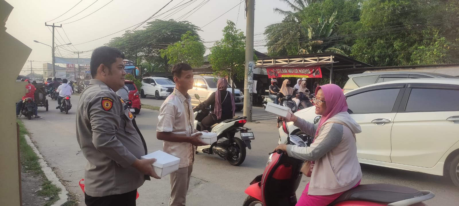 Cilegon – Personel Polsek Cibeber, Polres Cilegon, Polda Banten menggelar kegiatan *Jumat Berkah* dengan membagikan makan siang gratis kepada warga. Nasi kotak dibagikan kepada masyarakat yang melintas di depan Mako Polsek Cibeber.