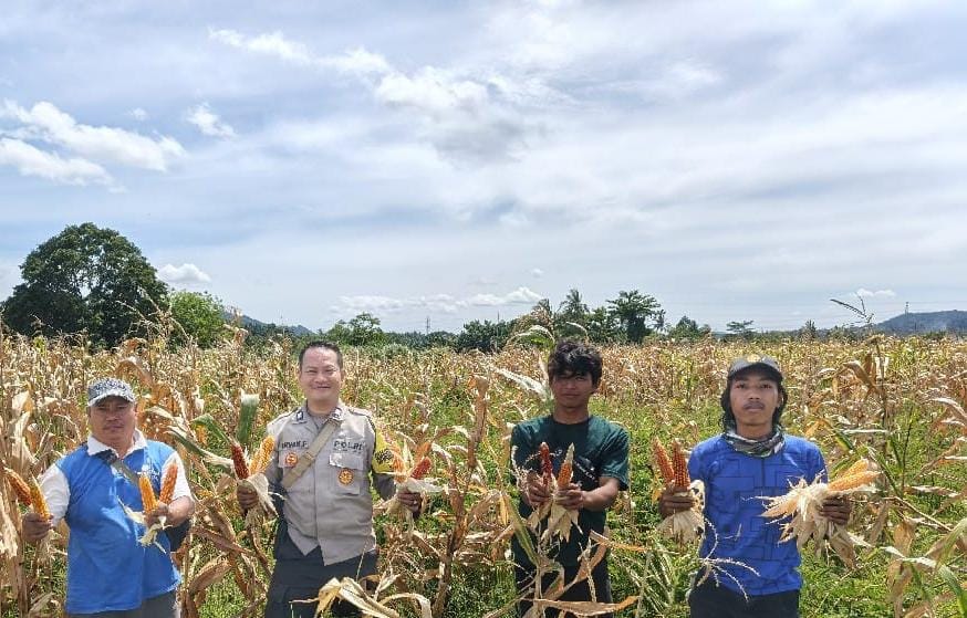 Bersama Poktan Polsek Anyar Melaksanakan Kegiatan Panen Jagung