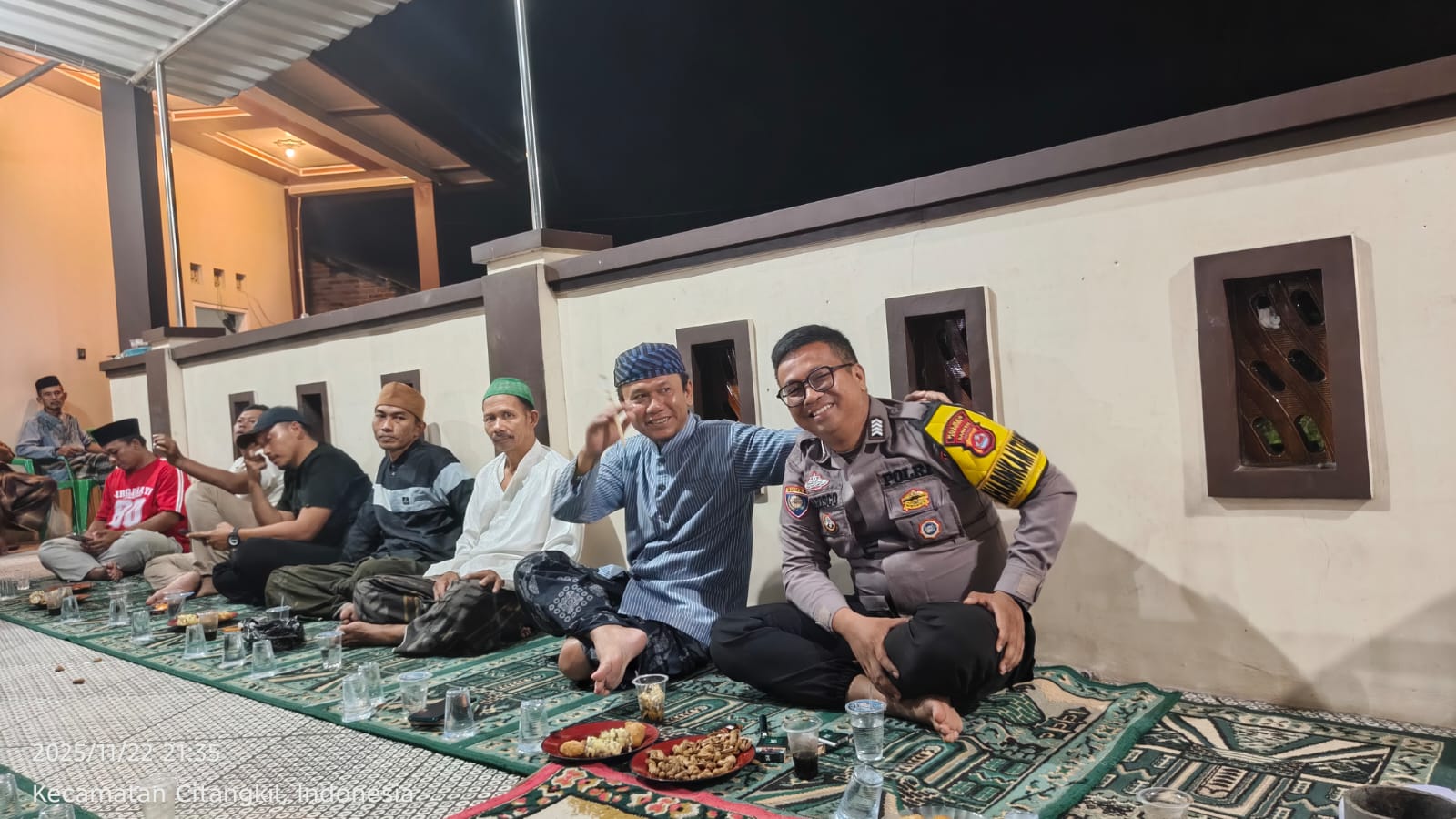 Cilegon - Bhabinkamtibmas Polsek Ciwandan Polres Cilegon Polda Banten menghadiri kegiatan Doa Bersama dan Dilanjutkan Pengajian Rutin dilingkungan Kelurahan Samangraya Kecamatan Citqngkil Kota Cilegon, Sabtu (29/11/2025).