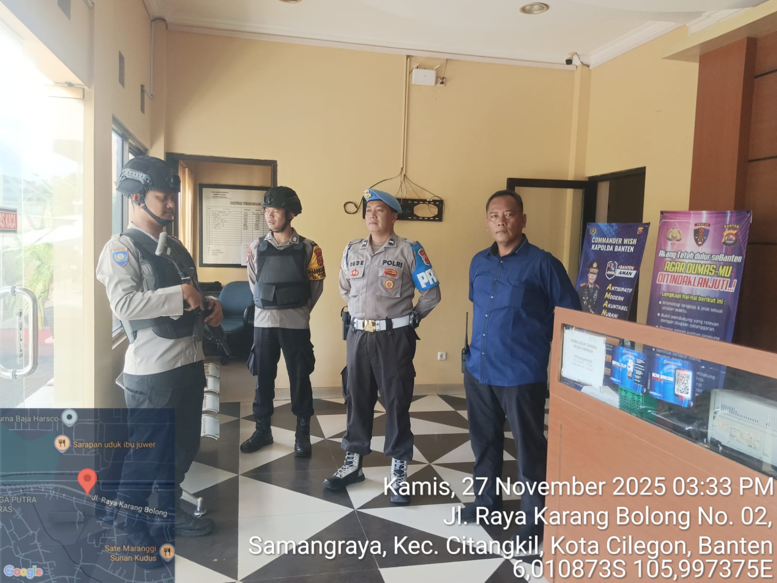 Cilegon - Guna mengantisipasi adanya potensi ancaman dan gangguan terhadap keamanan kantor maupun keselamatan personel piket jaga, Personil Polsek Ciwandan Polres Cilegon Polda Banten selalu tingkatkan kesiapsiagaan dan kewaspadaan dengan rutin menggelar kegiatan Sistem Pengamanan Mako (Sispam Mako), Sabtu (29/11/2025).