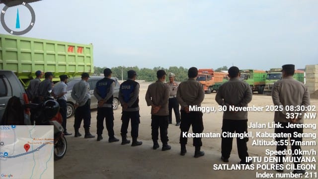 Cilegon - Panit Lantas Polsek Ciwandan IPTU Deni Mulyana Bersama Personil Gabungan Polres Cilegon Polda Banten melaksanakan Kegiatan KRYD Dan Himbauan SK Gubernur Dan monitoring stokfile pasir Didaerah hukum Polsek Ciwandan, Minggu (30/11/2025).