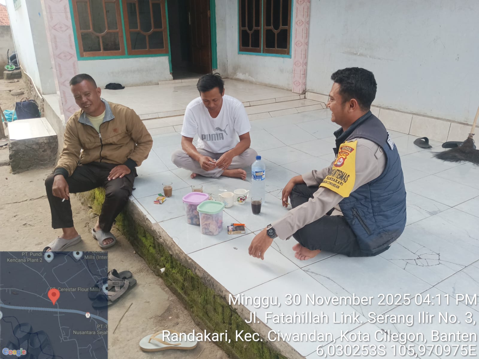 Cilegon - Bhabinkamtibmas Polsek Ciwandan Polres Cilegon Polda Banten Laksanakan Kopi Binmas,Ngopi Bareng Warga sekaligus Berikan Informasi Kamtibmas Dengan Cara Dialogis Bersama Warga Masyarakat, Minggu (30/11/2025).