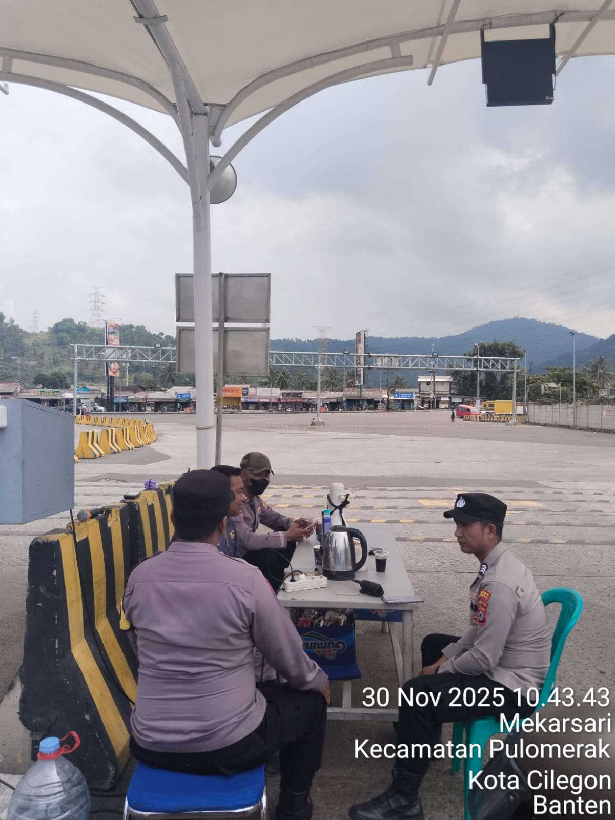 Cilegon - Personel Polsek Kskp Merak Polres Cilegon Polda Banten melaksanakan sambang dan patroli kawasan pelabuhan merak dalam rangka menjaga Harkamtibmas di Kawasan Pelabuhan Merak, Senin (01/12/2025).