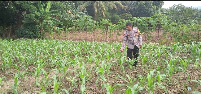 Setelah pengecekan, Bhabinkamtibmas memberikan saran mengenai pengendalian hama dan pemupukan yang tepat, serta memastikan tidak ada gangguan yang mengganggu pertumbuhan tanaman jagung di kawasan tersebut.