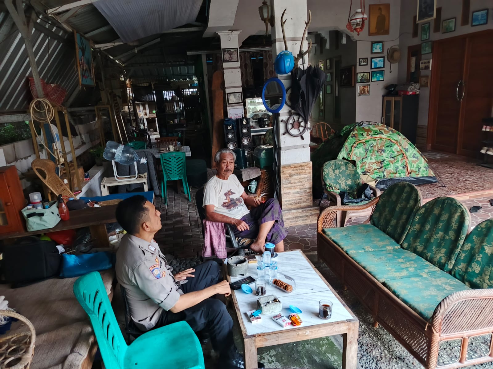 Anggota samapta Polsek Cilegon sambang kepada warga jalin keakraban menjaga keamanan di lingkungan wilayah hukumnya