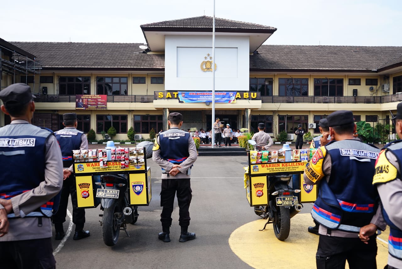 Polres Cilegon – Polres Cilegon Polda Banten menggelar Apel Bhabinkamtibmas dalam rangka penyerahan box Warbinling (Warung Bhabinkamtibmas Keliling) yang menjadi sarana baru dalam mendukung tugas pembinaan di wilayah. Kegiatan berlangsung di Lapangan Satya Haprabu Polres Cilegon, Rabu (3/12/2025).