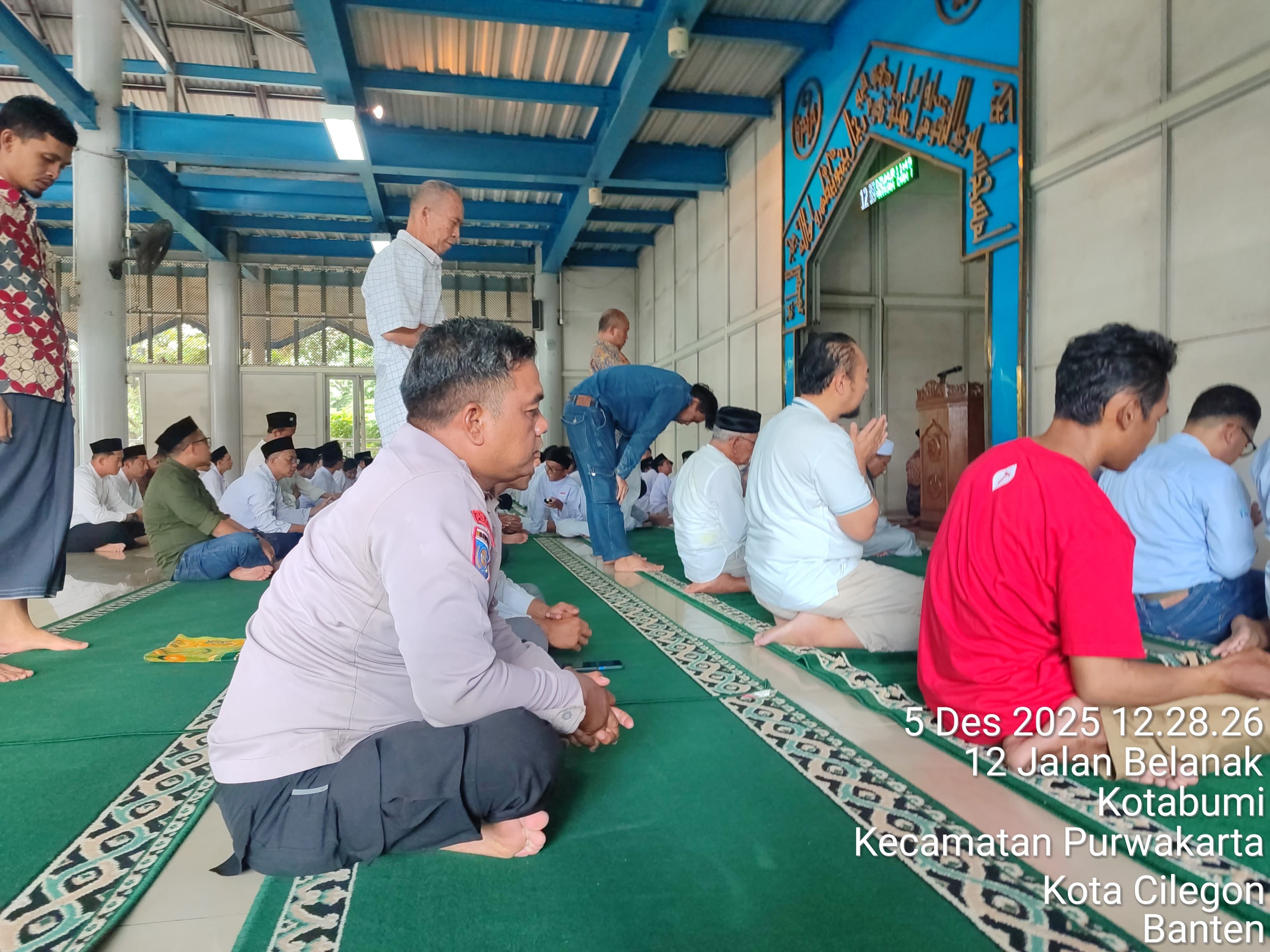 Cilegon - Dalam Rangka Memakmurkan Masjid Dan Sambang,Bhabinkamtibmas Polsek Ciwandan Polres Cilegon Polda Banten Sholat Berjama’ah dan Bersilaturahmi kepada para tokoh Agama sebagai upaya meningkatkan Ukhuwah Islamiyah dalam menjalin silaturahmi dan membangun komunikasi yang baik, Jum’at (05/12/2025).