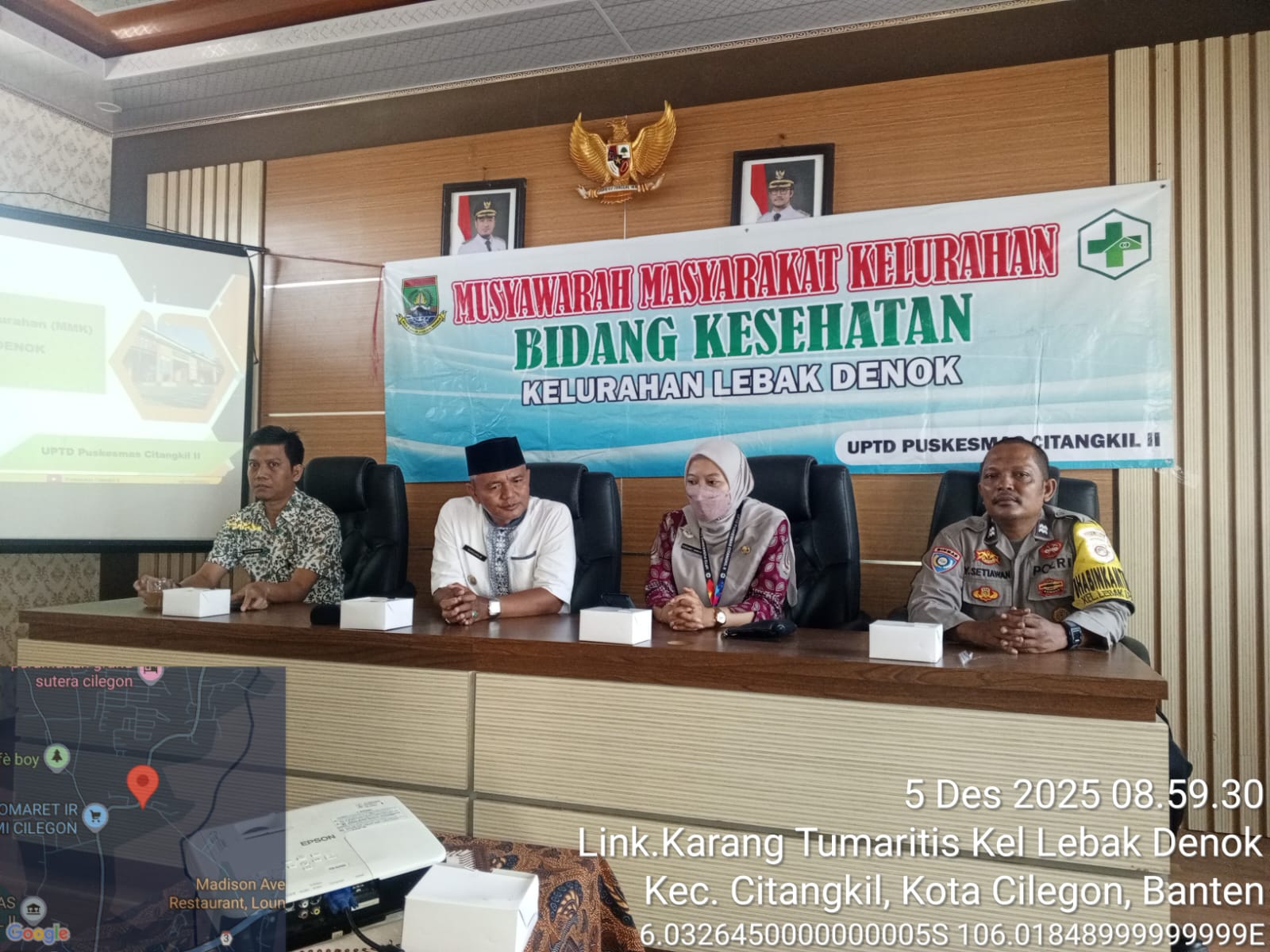 Cilegon - Polsek Ciwandan Polres Cilegon Polda Banten Hadir Dalam Kegiatan (MMK) Musyawarah Masyarakat Kelurahan Bidang Kesehatan UPTD Puskesmas Citangkil Tahun 2025 Di Aula Kantor Kelurahan Lebak Denok Kecamatan Citangkil, Jum'at (05/12/2025).