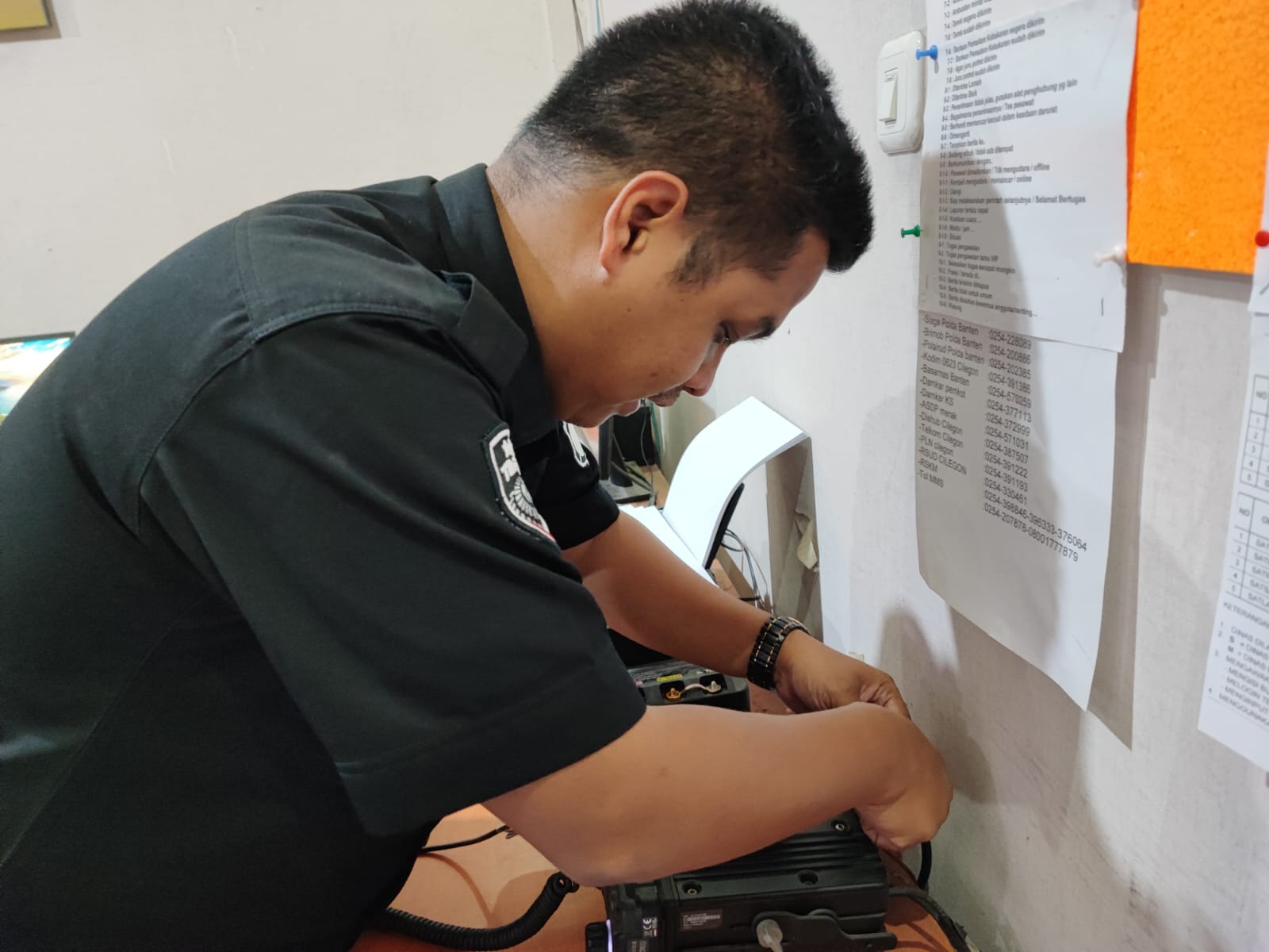 Anggota Tik Polres Cilegon Menyiapkan Sarana dan Prasarana Untuk Kegiatan Zoom meeting Dalam pelaksanaan kegiatan zoom meeting tersebut anggota TIK Polres Cilegon yang bertanggung jawab untuk menyiapkan peralatan zoom. Selain itu agar di tidak ada gangguan jaringan sebelum pelaksanaan anggota TIK melakukan pemeriksaan terhadap sarana dan prasarana tersebut . Satu jam sebelum kegiatan zoom meeting itu dimulai. Kapolres Cilegon AKBP. DR. MARTUA RAJA TARIPAR LAUT SILITONGA. melalui Kasi TIK IPTU Lukman menyampaikan bahwa “untuk menunjang kelancaran penyampaian informasi anggota TIk Polres Cilegon selalu memeriksa sarana dan prasarana tersebut, sebelum maupun pada saat pelaksanaan akan selalu di monitor”