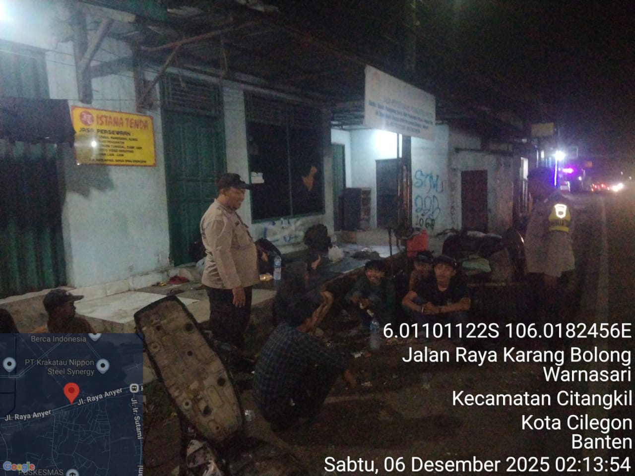 Cilegon - Personil Polsek Ciwandan Ciptakan situasi keamanan dan ketertiban di masyarakat (Kamtibmas) yang aman kondusif Dengan Melaksanakan kegiatan patroli malam guna mencegah gangguan kamtibmas dan kejahatan jalanan, Sabtu (06/12/2025).
