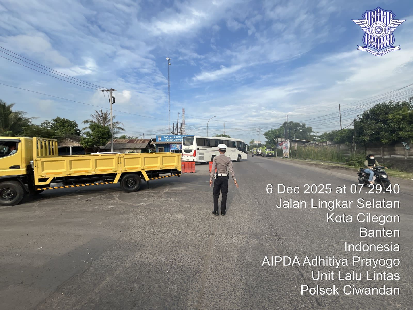 Cilegon - Weekend kali ini Personil Unit Lantas Polsek Ciwandan Polres Cilegon Polda Banten melaksanakan pengaturan lalu lintas di Simpang JLS tepatnya di Pertigaan depan PT. Semen Indonesia Demi Kelancaran Arus Lalu-lintas Wisata, Sabtu (06/12/2025).