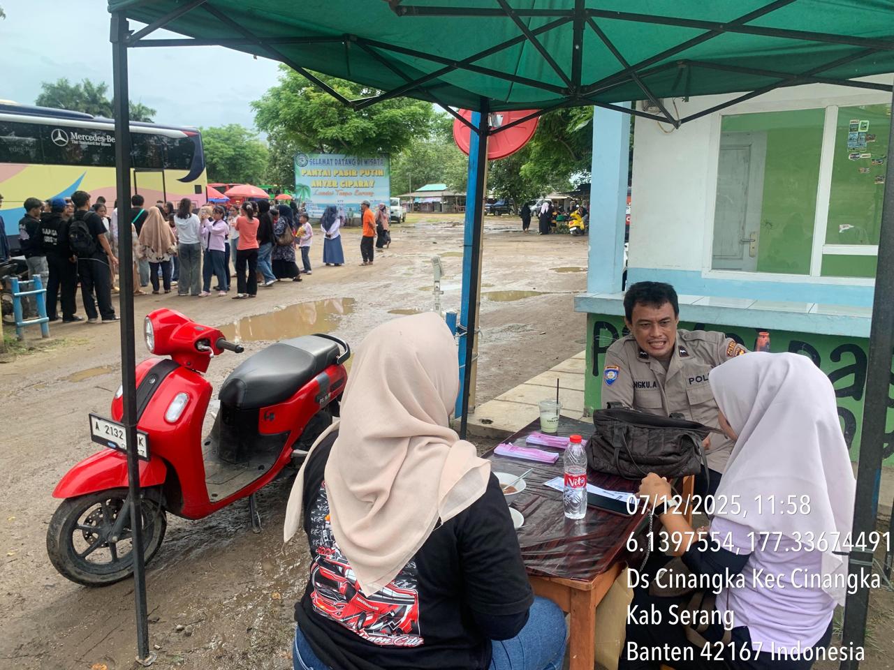 _*POLRES CILEGON*_ | Polsek Cinangka Polres Cilegon Polda Banten melaksanakan kegiatan patroli Serta memberikan Himbauan kepada pengunjung pantai yang berwisata dan Sambang kepada petugas penjaga pantai dan juga antisipasi harkamtibmas di Wilayah Hukum Polsek Cinangka Polres Cilegon Polda Banten, Minggu (07/12/2025).