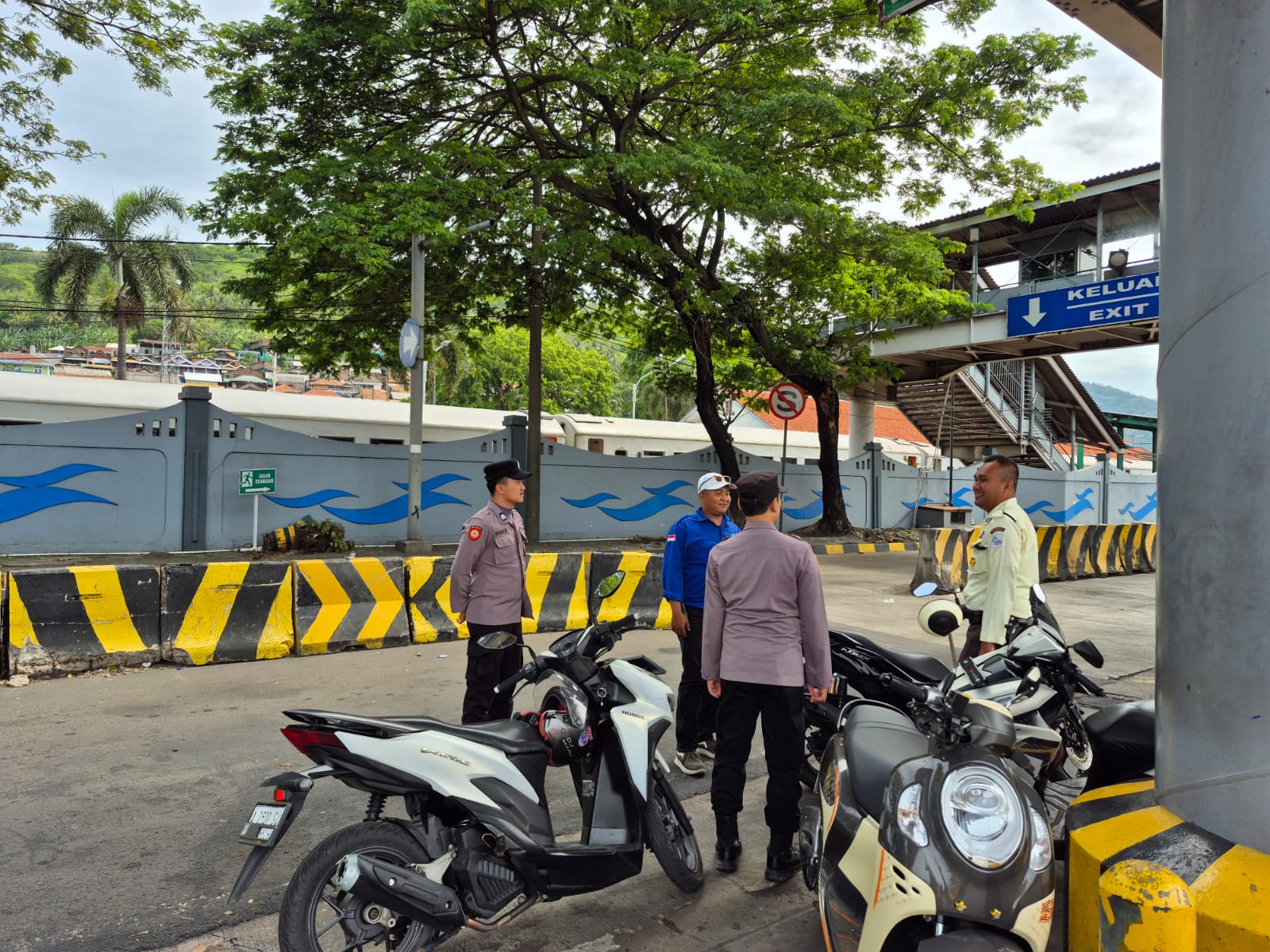 Cilegon - Personel Polsek Kskp Merak Polres Cilegon Polda Banten melaksanakan sambang dan patroli kawasan pelabuhan merak dalam rangka menjaga Harkamtibmas di Kawasan Pelabuhan Merak, Minggu (07/12/2025).