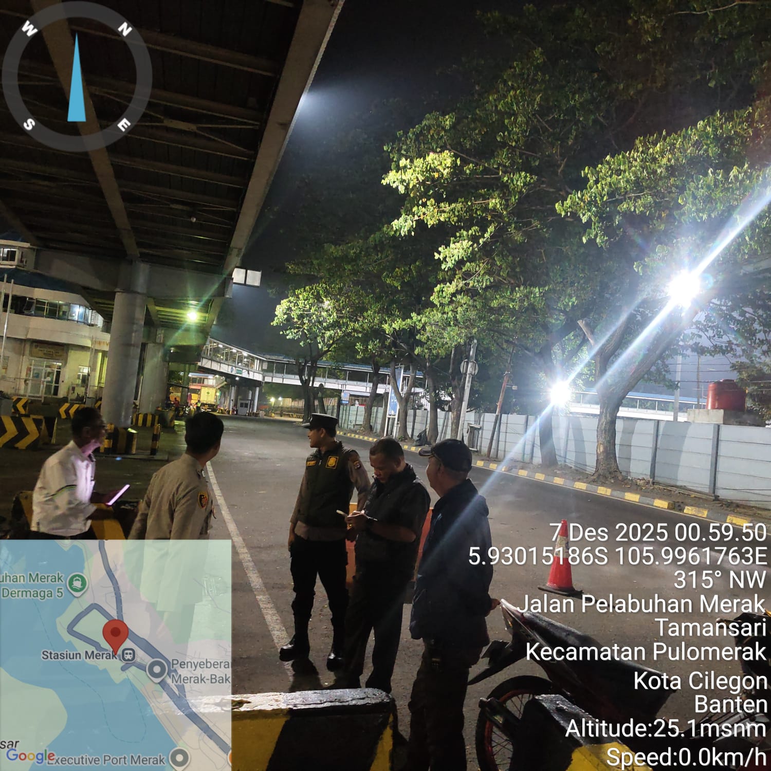 Cilegon - Personil Polsek Kskp Merak Polres Cilegon melaksanakan patroli di kawasan pelabuhan merak memberikan rasa aman dan damai, Minggu (07/12/2025)