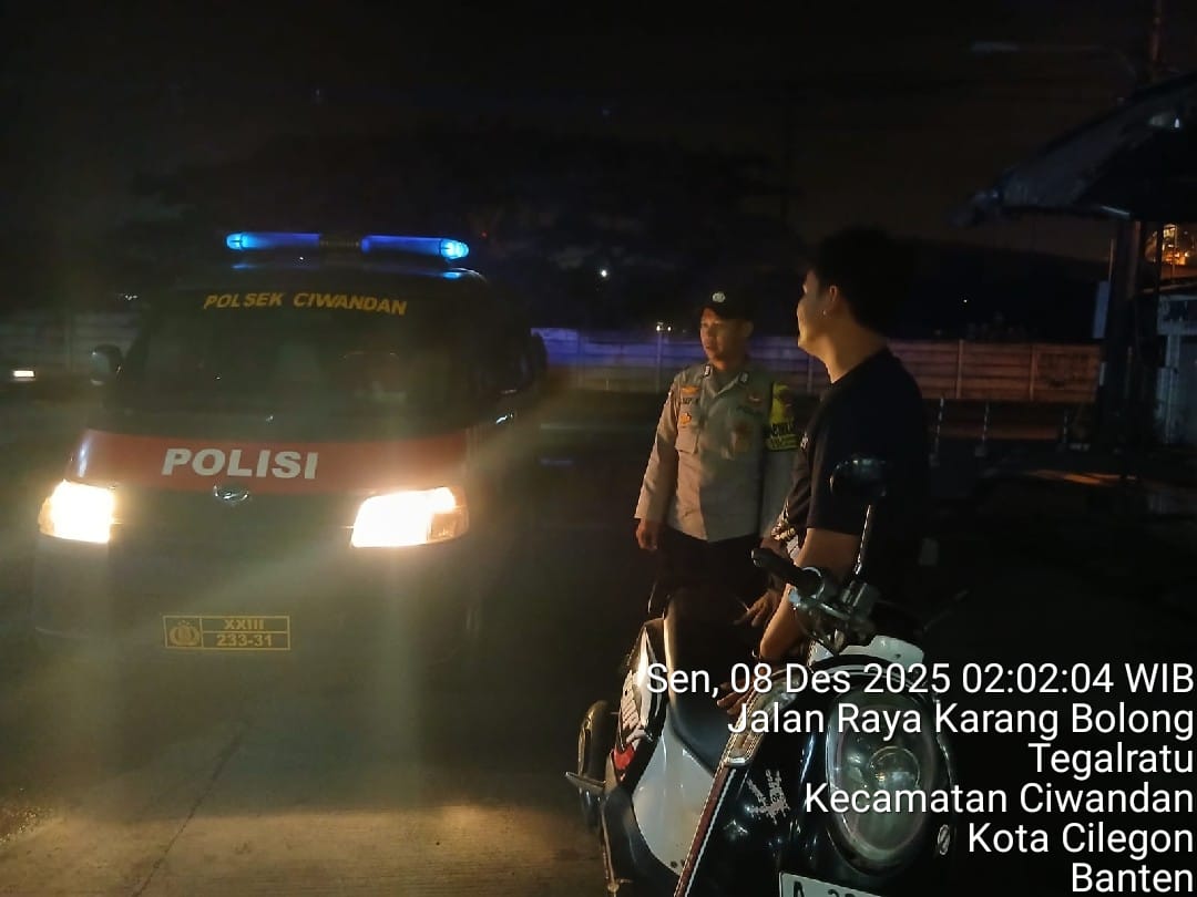 Cilegon - Guna mengantisipasi gangguan kamtibmas di Daerah hukum Polsek Ciwandan, Personil Polsek Ciwandan Polres Cilegon Polda Banten Selalu menggelar patroli malam Kedaerah Pada Jam Yang Dianggap Rawan hingga dini hari, Minggu (07/12/2025).