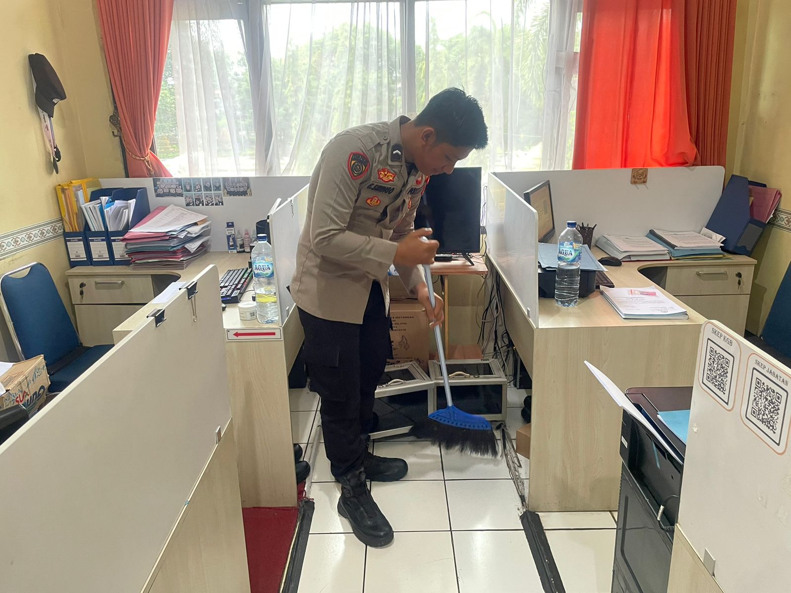 Anggota Bag SDM Polres Cilegon, seelalu melaksanakan aktivias rutin dalam membersihkan ruangan kerja.