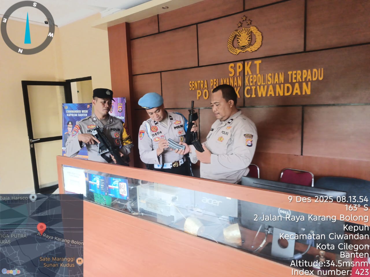 Cilegon - Ka SPKT Polsek Ciwandan Polres Cilegon Polda Banten Pimpin langsung pengecekan kendaraan Dinas Dan Inventaris Polsek Ciwandan Saat Serah terima Tugas Penjagaan, khususnya mobil patroli, Selasa (09/12/2025).