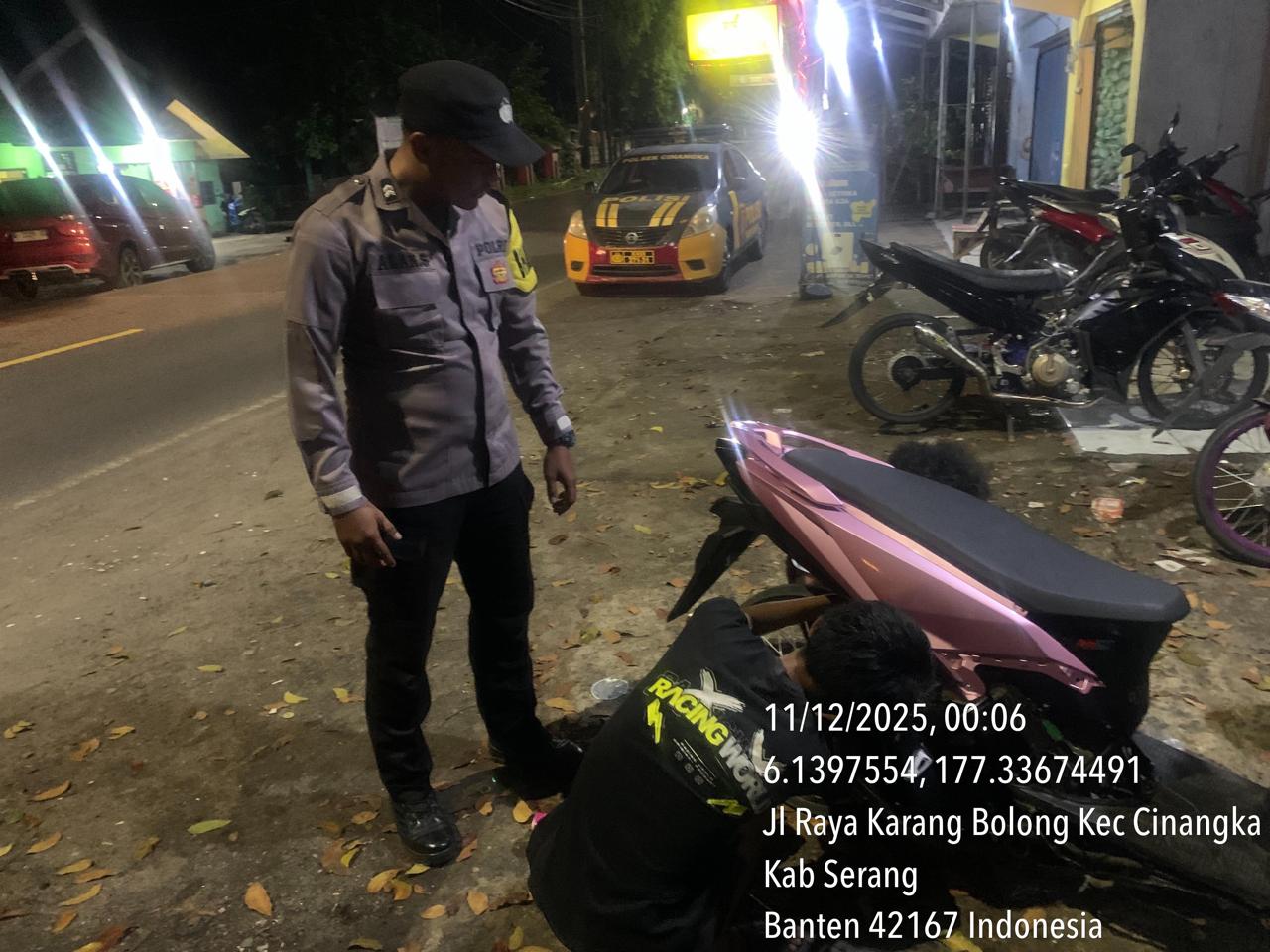 *Polres Cilegon* – Dalam Rangka Pencegahan Kejahatan Jalanan dan Memelihara situasi keamanan dan menjaga serta memberikan rasa aman dan nyaman di masyarakat,Salah satu upaya untuk mewujudkan hal tersebut sebagaimana yang dilakukan oleh Personil Polsek Cinangka Polres Cilegon Polda Banten melaksanakan giat patroli blue light malam hari hingga menjelang pagi, Kamis (11/12/2025).
