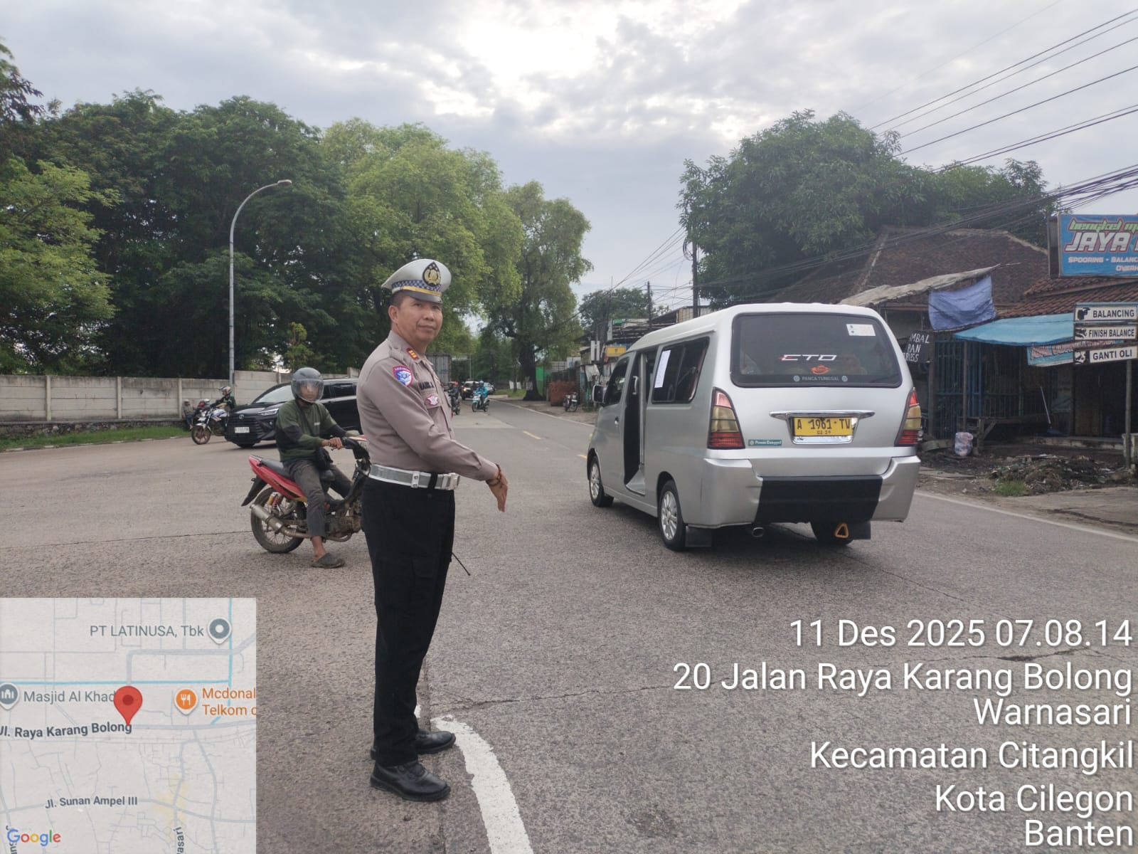 Cilegon - Tingginya mobilitas masyarakat pada jam-jam sibuk, tingkat kerawanan baik itu kemacetan ataupun kecelakaan pasti ada potensi, sehingga untuk mengantisipasi hal tersebut Personil Polsek Ciwandan Polres Cilegon Polda Banten Bhabinkamtibmas melaksanakan Strong Point pada sejumlah lokasi, Kamis (11/12/2025).