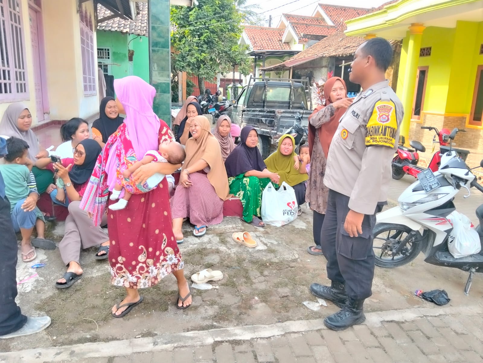 Cilegon ~ Personil Bhabinkamtibmas Polsek Bojonegara Polres Cilegon Polda Banten melaksanakan kegiatan sambang secara door to door serta berdialogis kepada ibu – ibu dan Anak warga Desa Ukirsari serta berikan himbauan kamtibmas, Jumat (12/12/2025).