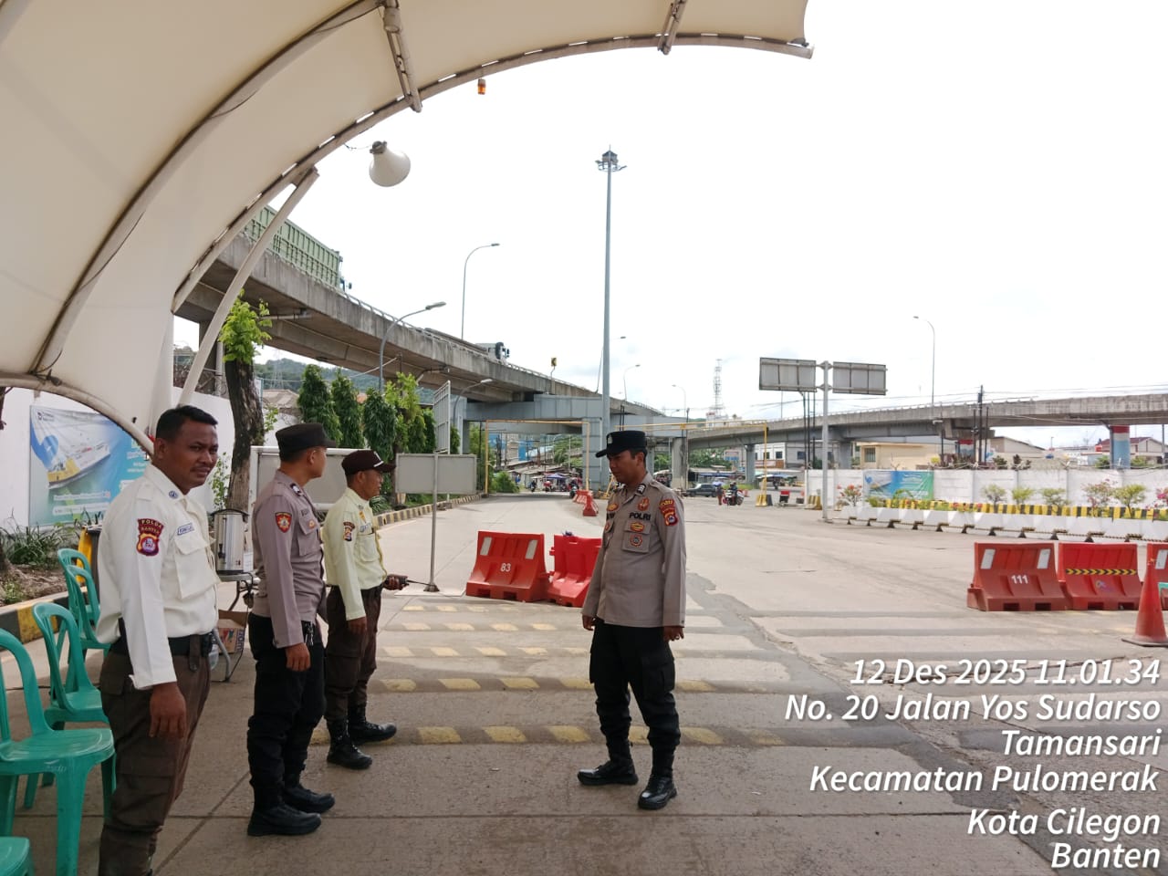 Cilegon - Personel Polsek Kskp Merak Polres Cilegon Polda Banten melaksanakan sambang dan patroli kawasan pelabuhan merak dalam rangka menjaga Harkamtibmas di Kawasan Pelabuhan Merak, Jumat (12/12/2025).