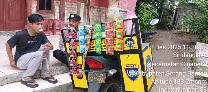 Polres Cilegon ~ Bhabinkamtibmas Polsek Cinangka Polres Cilegon Polda Banten Sambang dan silaturahmi dengan masyarakat merupakan salah satu tugas seorang bhabinkamtibmas untuk mengetahui situasi Kamtibmas Desa binaan dalam menjalin silaturahmi dengan Warga Ds Cinangka di Warung Bhabinkamtibmas, Sabtu (13/12/2025).