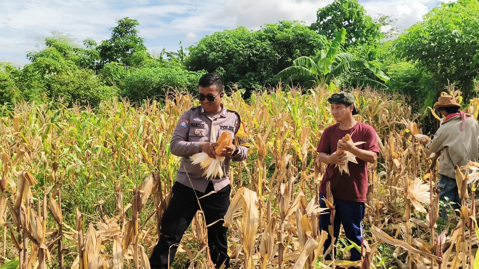 Wujud Nyata Ketahanan Pangan,Bhabinkamtibmas Panen Jagung Bersama Kelompok Tani