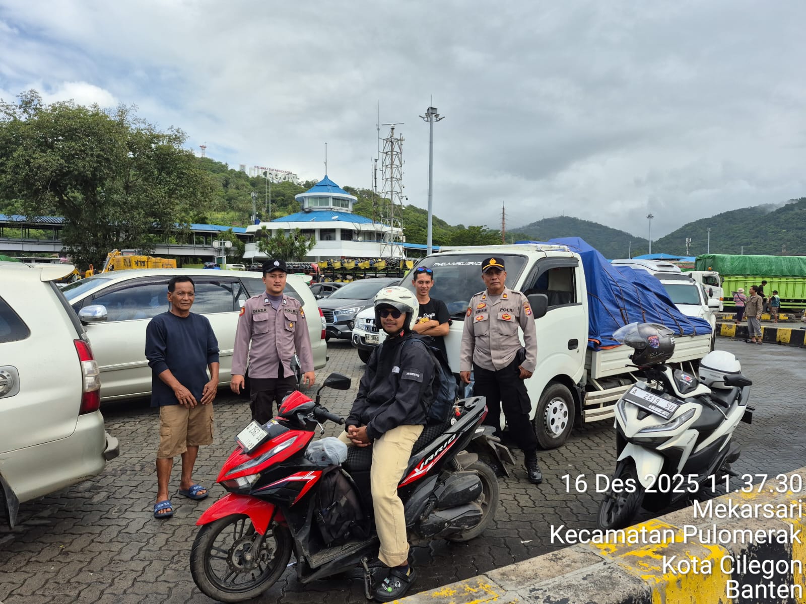 Cilegon - Personel Polsek Kskp Merak Polres Cilegon Polda Banten melaksanakan sambang dan patroli kawasan pelabuhan merak dalam rangka menjaga Harkamtibmas di Kawasan Pelabuhan Merak, Selasa (16/12/2025).
