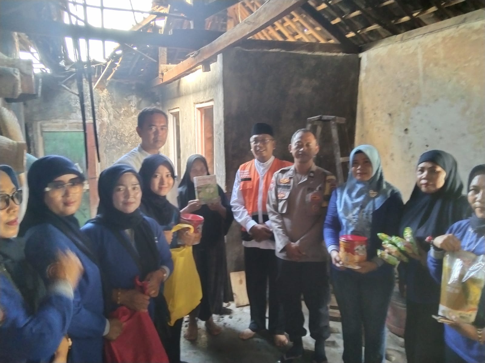 Cilegon - Bhabinkamtibmas Kelurahan Gunung Sugih AIPTU Tri Widodo, mendampingi BAZNAS Kota Cilegon memberikan bantuan kepada Ibu Junariyah, warga Link Kopo Landoh, Kel. Gunung Sugih, Ciwandan, Jum'at (19/12/2025).