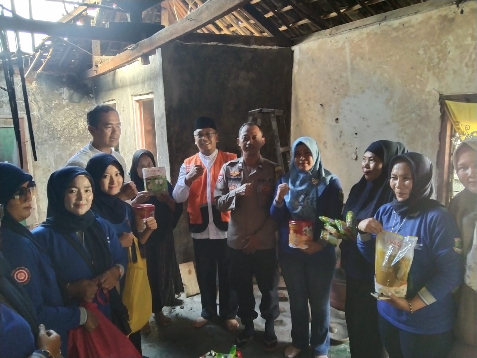 Cilegon - Bhabinkamtibmas Kelurahan Gunung Sugih AIPTU Tri Widodo, mendampingi BAZNAS Kota Cilegon memberikan bantuan kepada Ibu Junariyah, warga Link Kopo Landoh, Kel. Gunung Sugih, Ciwandan, Jum'at (19/12/2025).