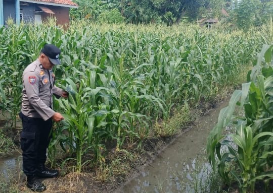 Anggota Bhabinkamtibmas Polsek Purwakarta pendampingan Pengecekan Tanaman Jagung di Kelurahan Kebondalem,Cilegon