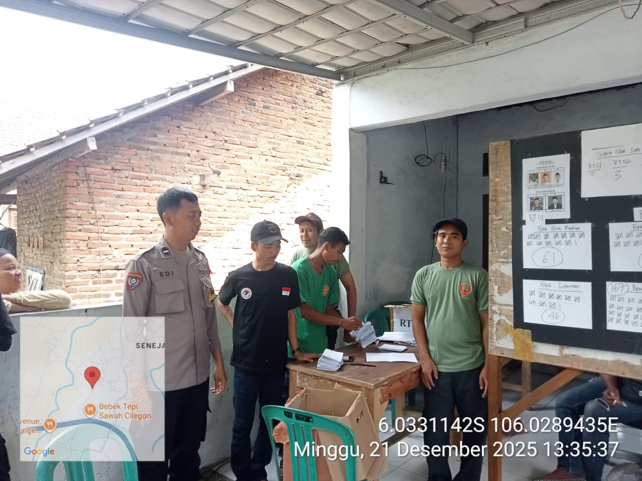 Cilegon - Bhabinkamtibmas Kelurahan Tamanbaru Polsek Ciwandan Polres Cilegon Polda Banten AIPDA Ediyanto menghadiri pemilihan Ketua RW 003 Lingkungan Kubang Lesung kelurahan Tamanbaru Kecamatan Citangkil Kota Cilegon, Minggu (21/12/2025).