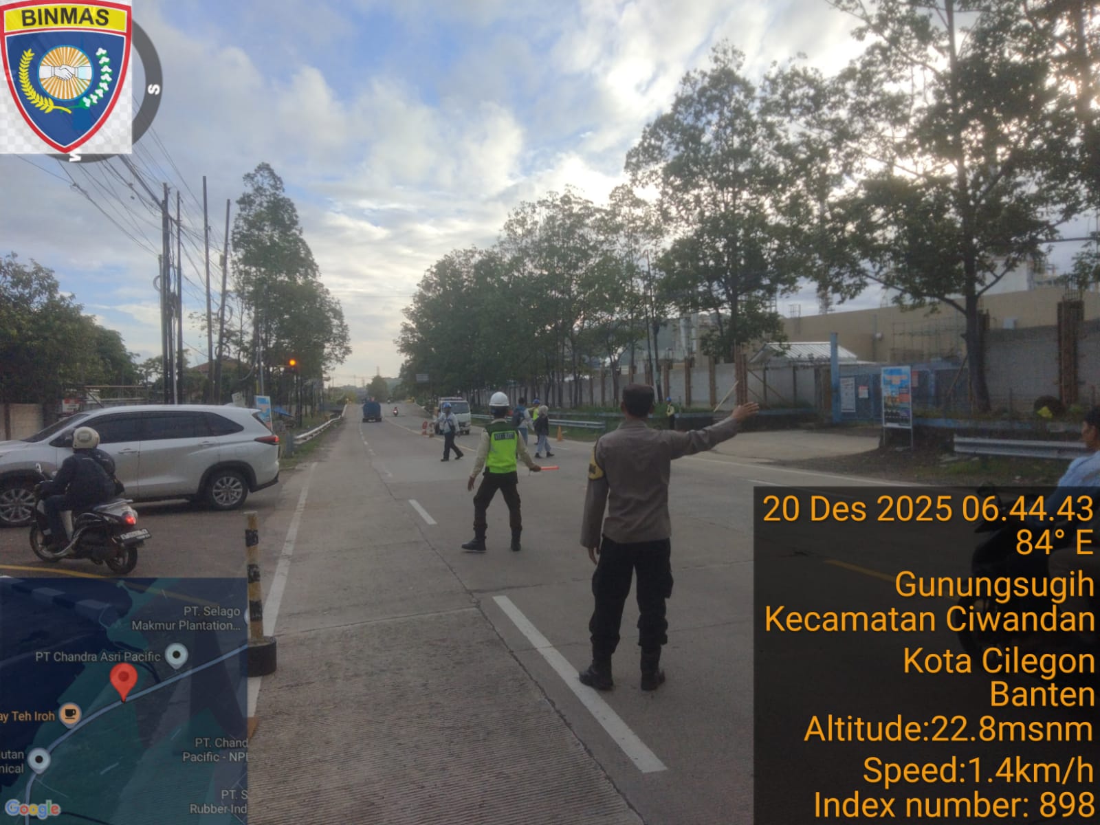 Cilegon - Personil Polsek Ciwandan Polres Cilegon Polda Banten melaksanakan giat Strong Poin Pengaturan Lalu Lintas Disimpang Brown Kelurahan Gunung Sugih guna menciptakan ketertiban, keamanan dan Kelancaran Lalu-lintas bagi masyarakat, Minggu (21/12/2025).