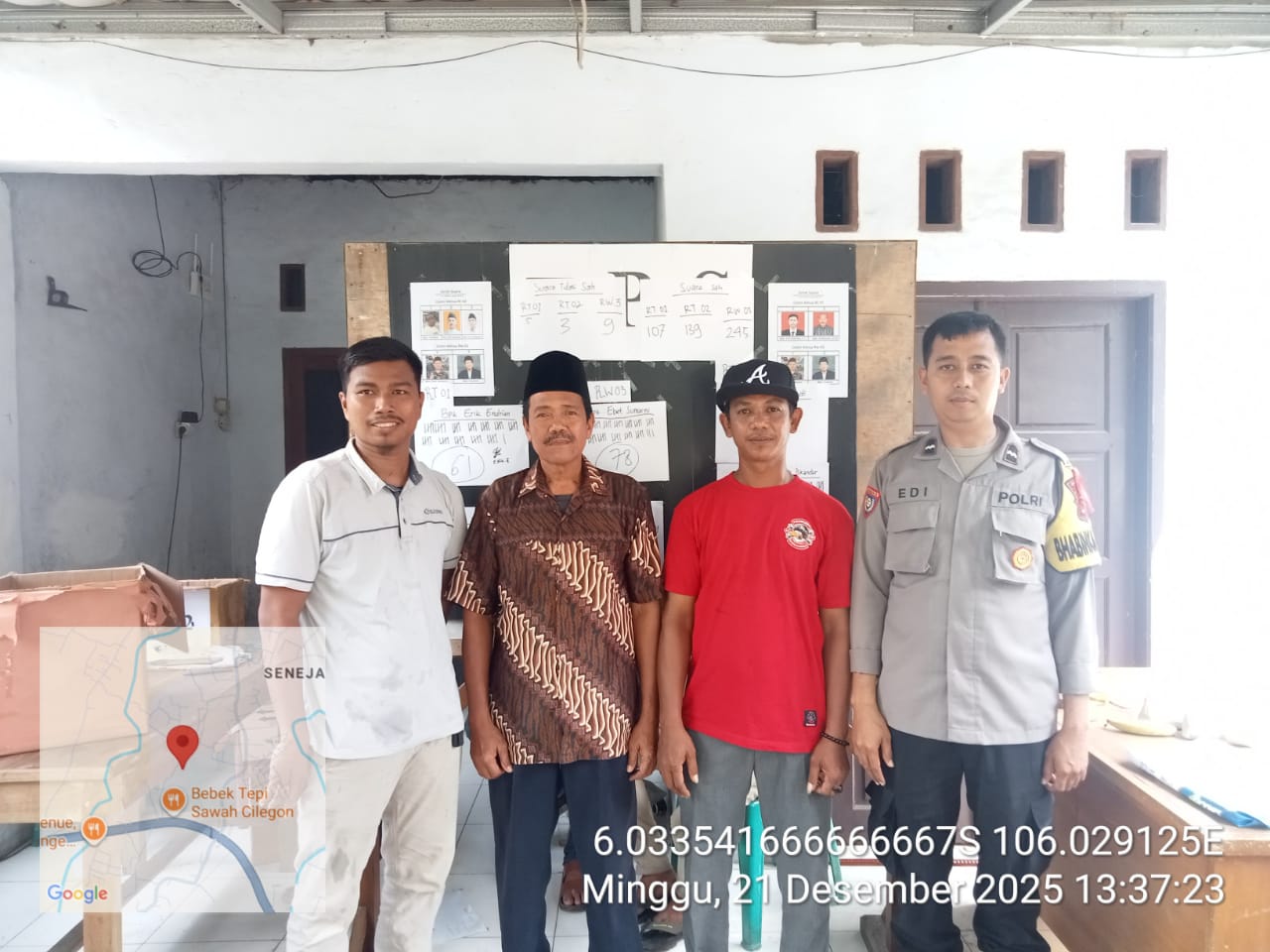 *Cilegon* -  Bhabinkamtibmas Kelurahan Tamanbaru Polsek Ciwandan Polres Cilegon Polda Banten AIPDA Ediyanto menghadiri pemilihan Ketua RW 003 Lingkungan Kubang Lesung kelurahan Tamanbaru Kecamatan Citangkil Kota Cilegon, Minggu (21/12/2025).