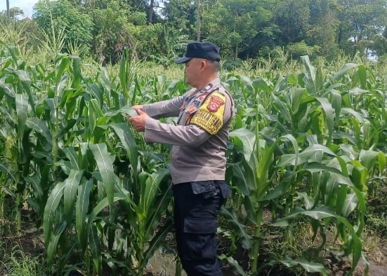 Bhabinkamtibmas Polsek Purwakarta kelurahan Kebondalem Cek Tanaman Jagung,Pastikan Pertumbuhan Baik di Lingkungan Bebulak Timur