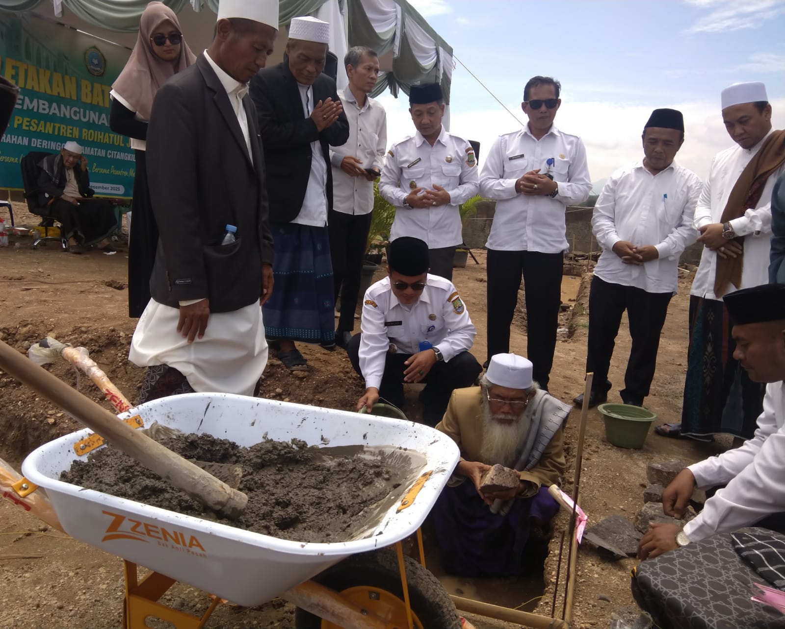 Cilegon - Wakapolsek Ciwandan AKP Uup M Ma'ruf dan personil Polsek Ciwandan hadiri peletakan batu pertama pembangunan Ponpes Roihatul Jannah Banten di Link. Warnasari 2, Kel. Dringo, Citangkil. Kegiatan dihadiri Pemerintah Daerah, TNI Polri, Tokoh Agama, dan Masyarakat,Rabu (24/12/2025).