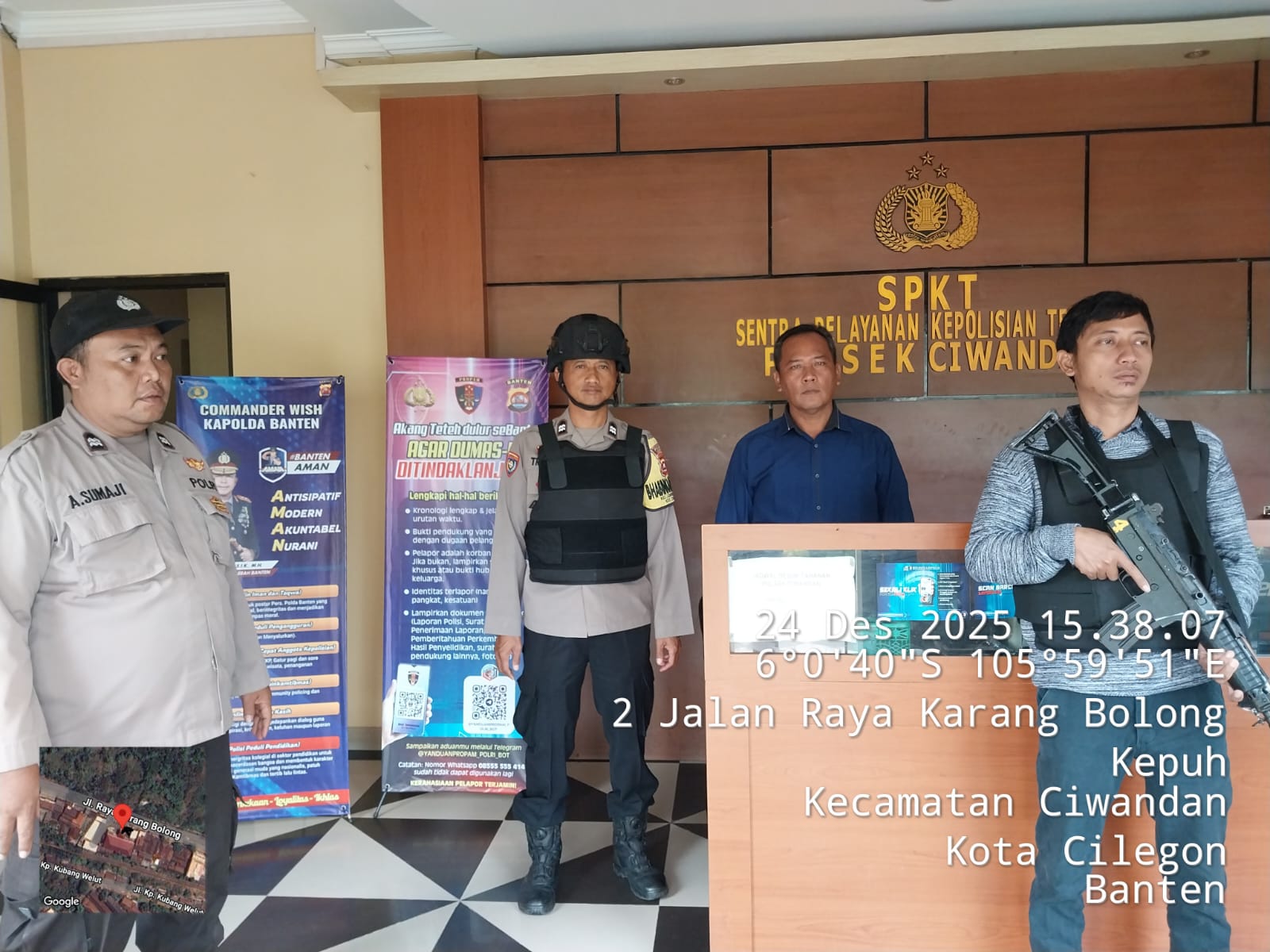Cilegon - Dalam Kesiap Siagaan dan Memperketat Penjagaan Mako (Markas Komando), Personil Polsek Ciwandan Polres Cilegon Polda Banten melaksanakan Sistem Pengamanan Markas Komando (Sispam Mako), Rabu (24/12/2025).